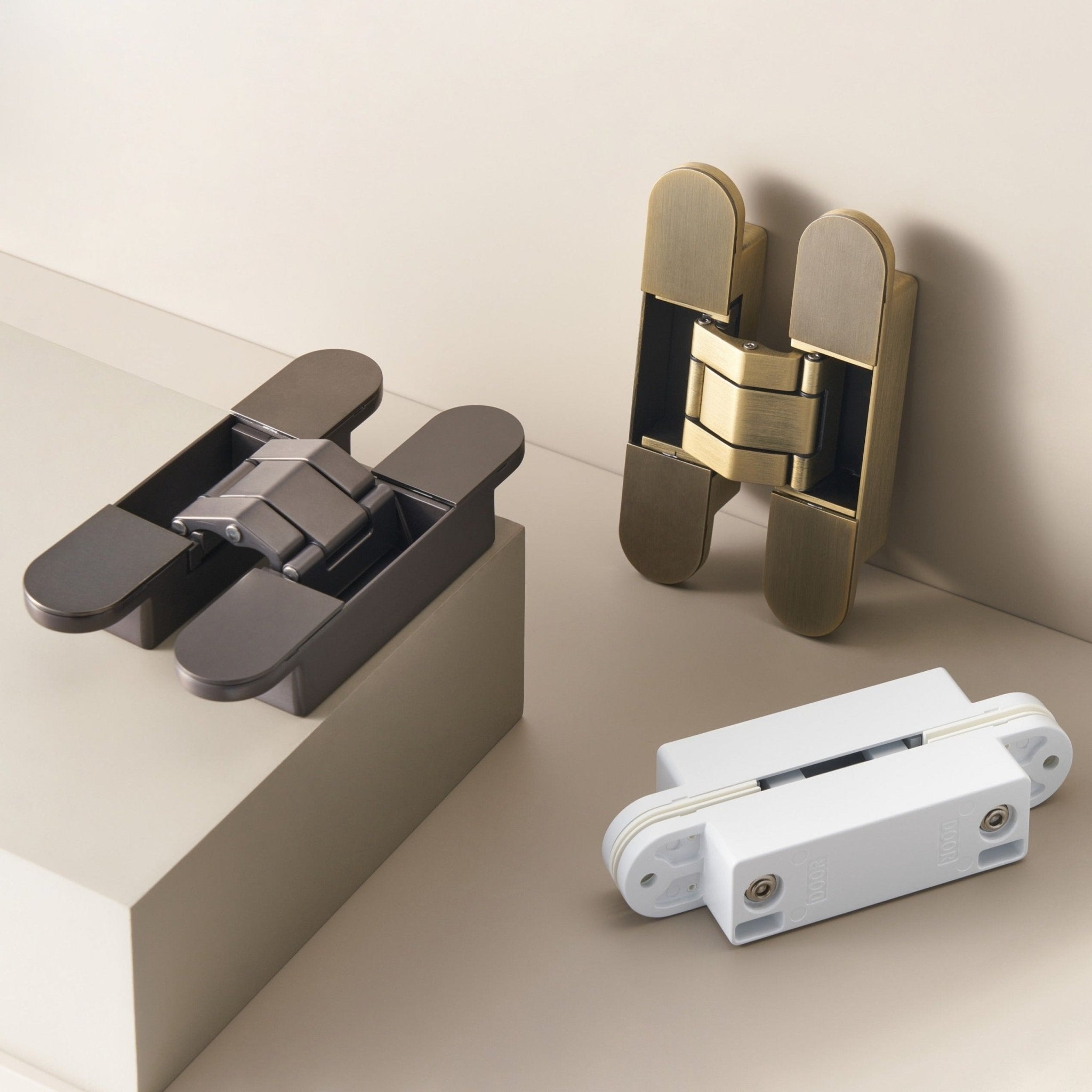 Concealed mechanism. Three-axis adjustment. Built for frameless cabinetry.