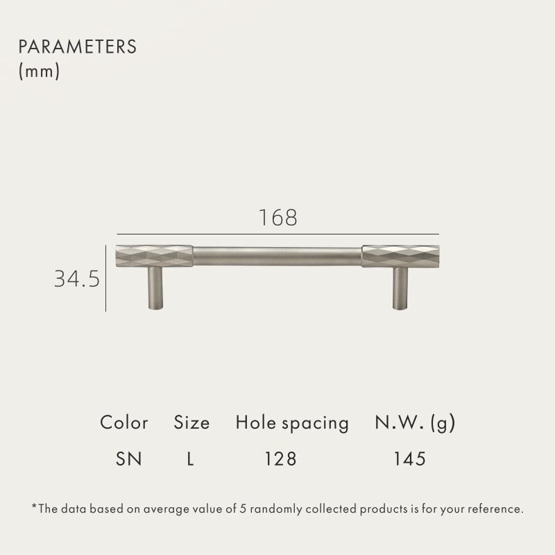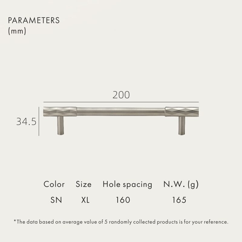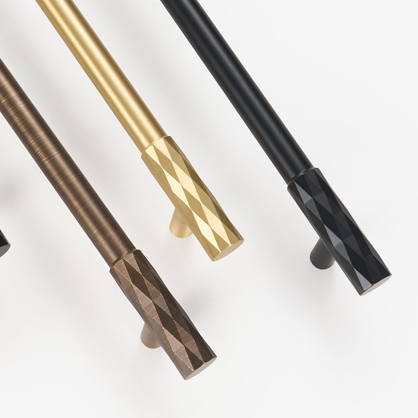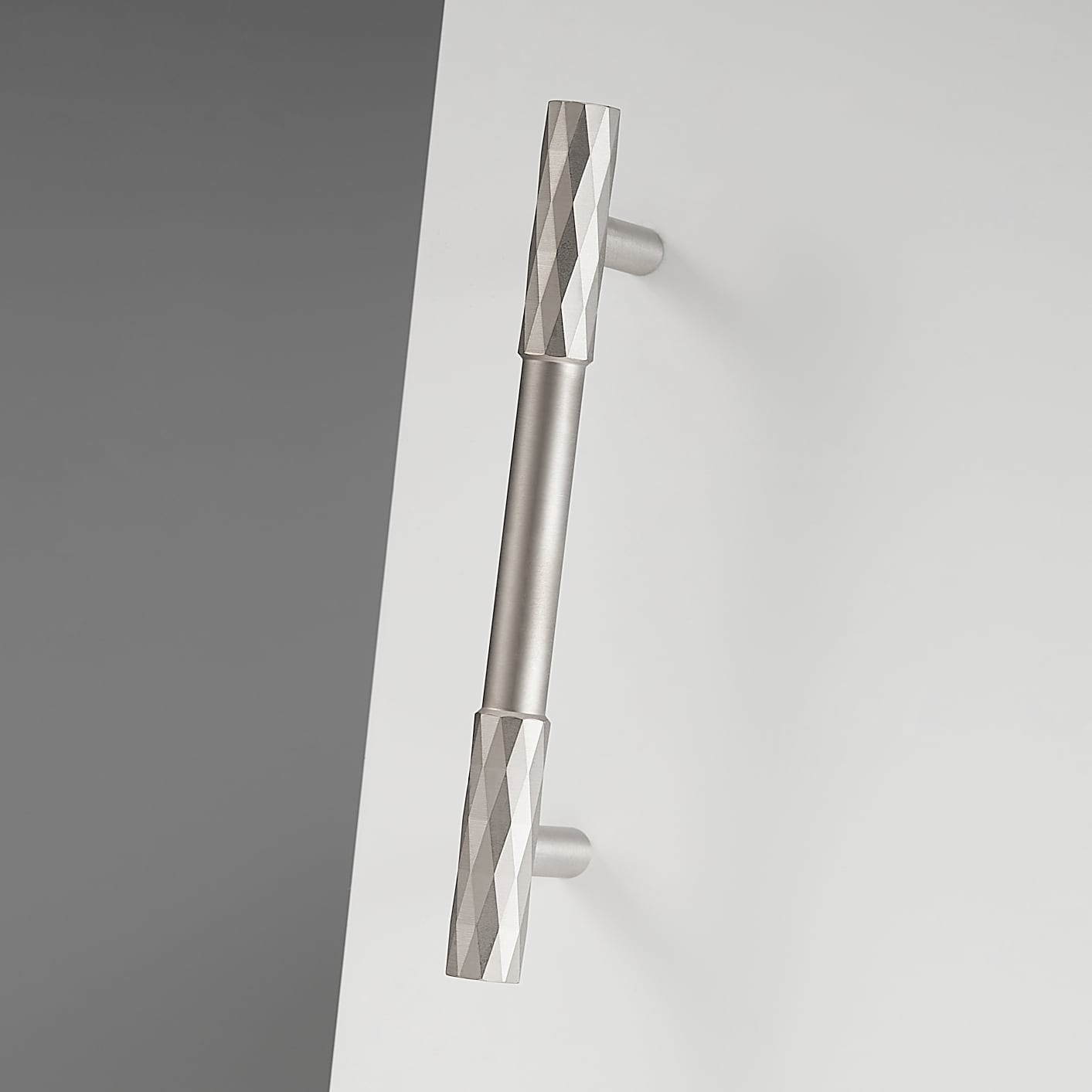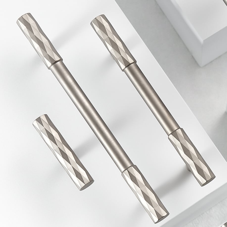 The ADAMAS handle takes the same diamond-cut pattern from the knob and stretches it across a full bar. The faceted surface runs the entire length… View product details