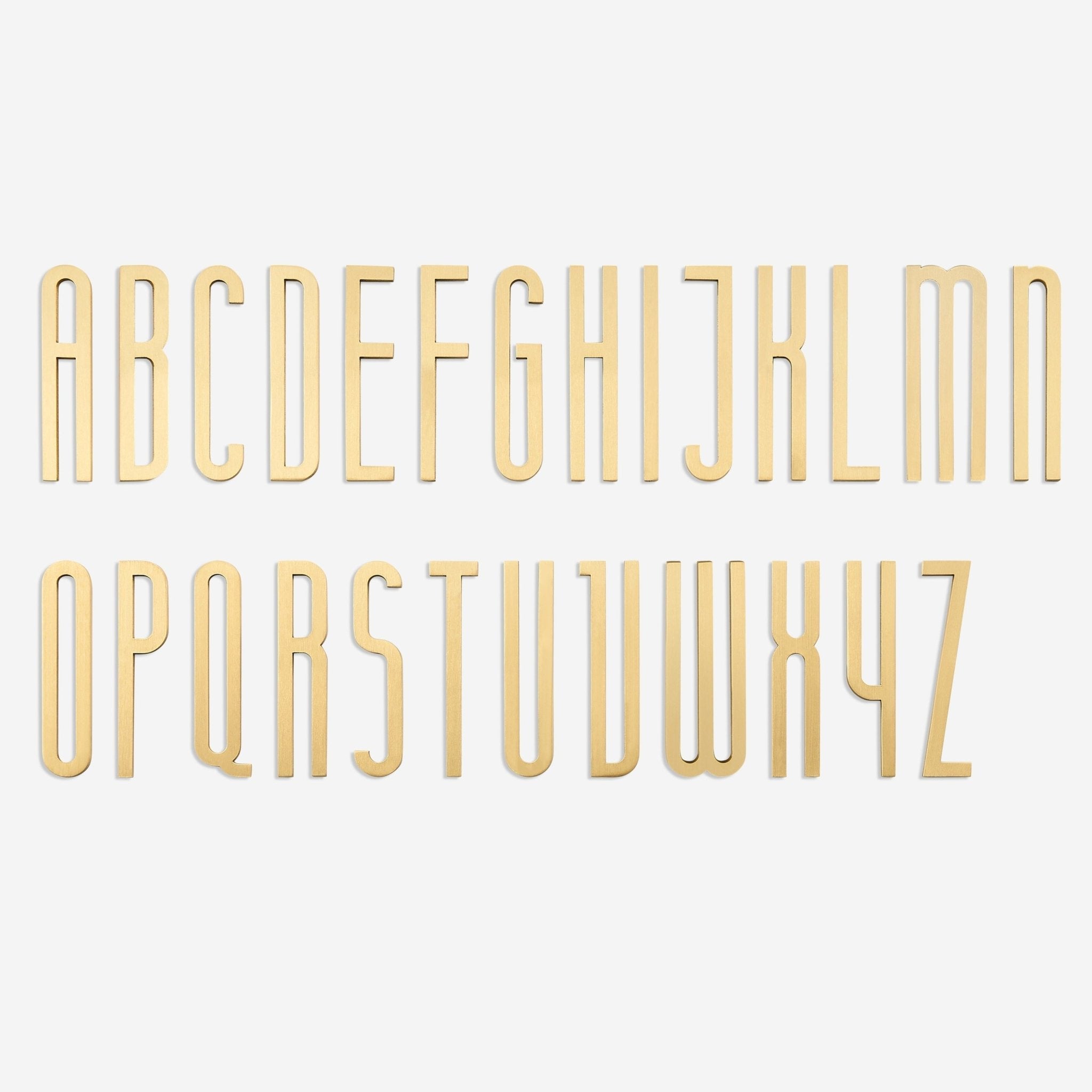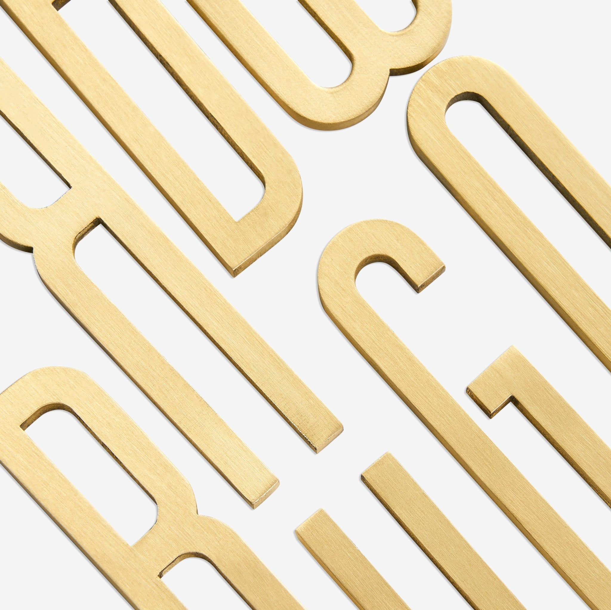 The same solid brass construction as the AMYTHUS numbers. Each letter is cast individually, with a satin finish that weathers naturally outdoors. Brass develops patina over time, giving the signage character that improves with age.