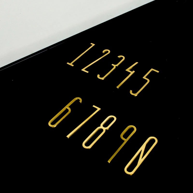 Each number is cast in solid brass with a satin finish. The material weathers well outdoors, developing a natural patina that adds character over time. If you prefer a consistent appearance, the brass can be lacquered or sealed after installation.
