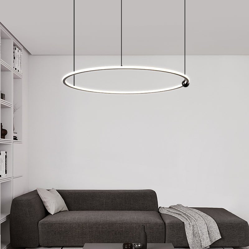 The single-ring pendant works on its own or stacked at different heights with the ANELLI Circular Chandelier for a layered, sculptural installation.