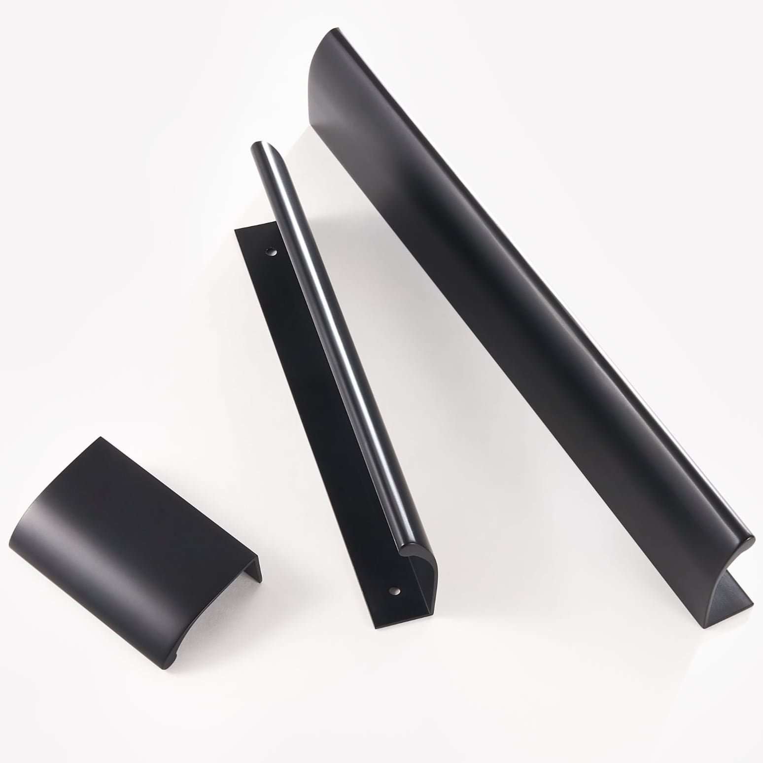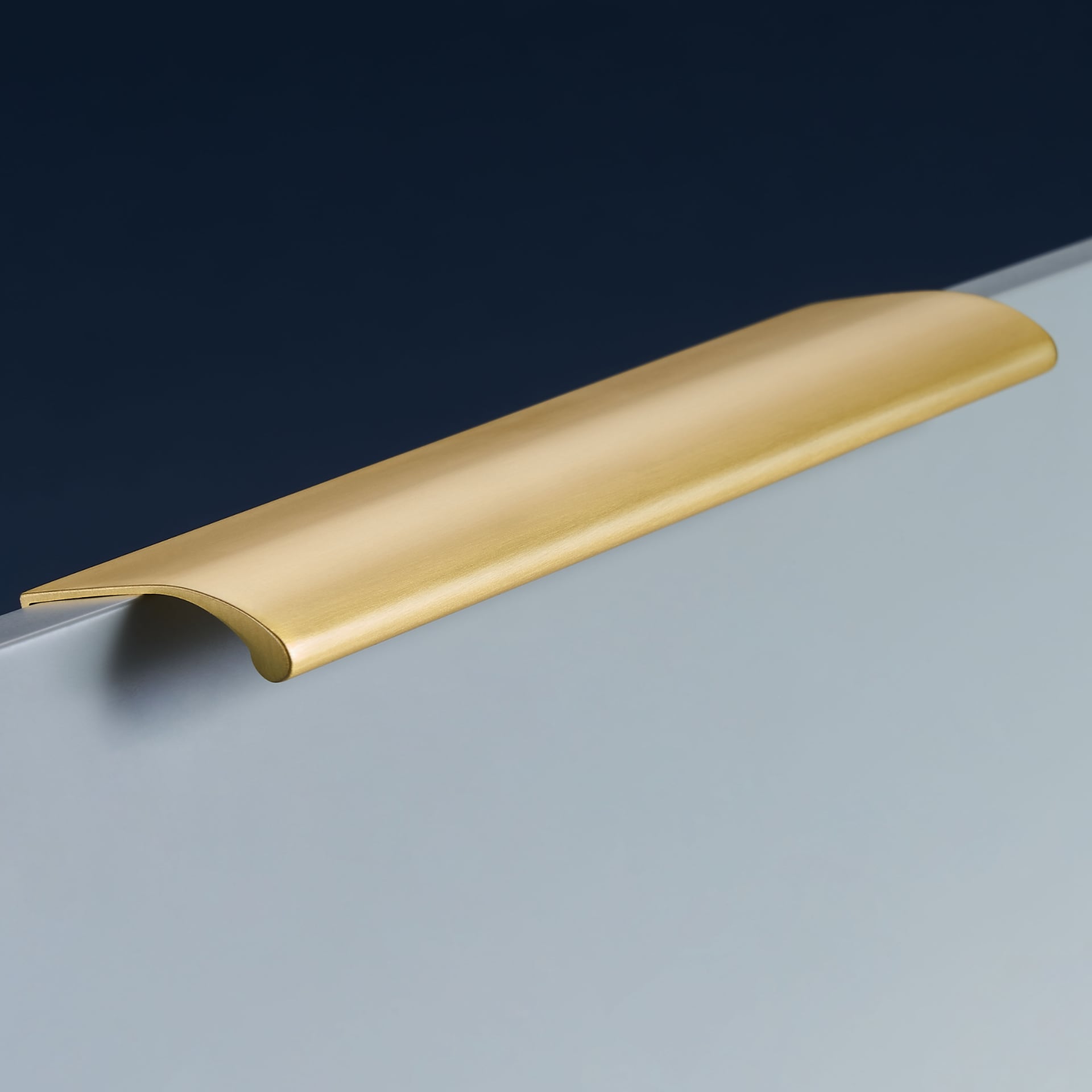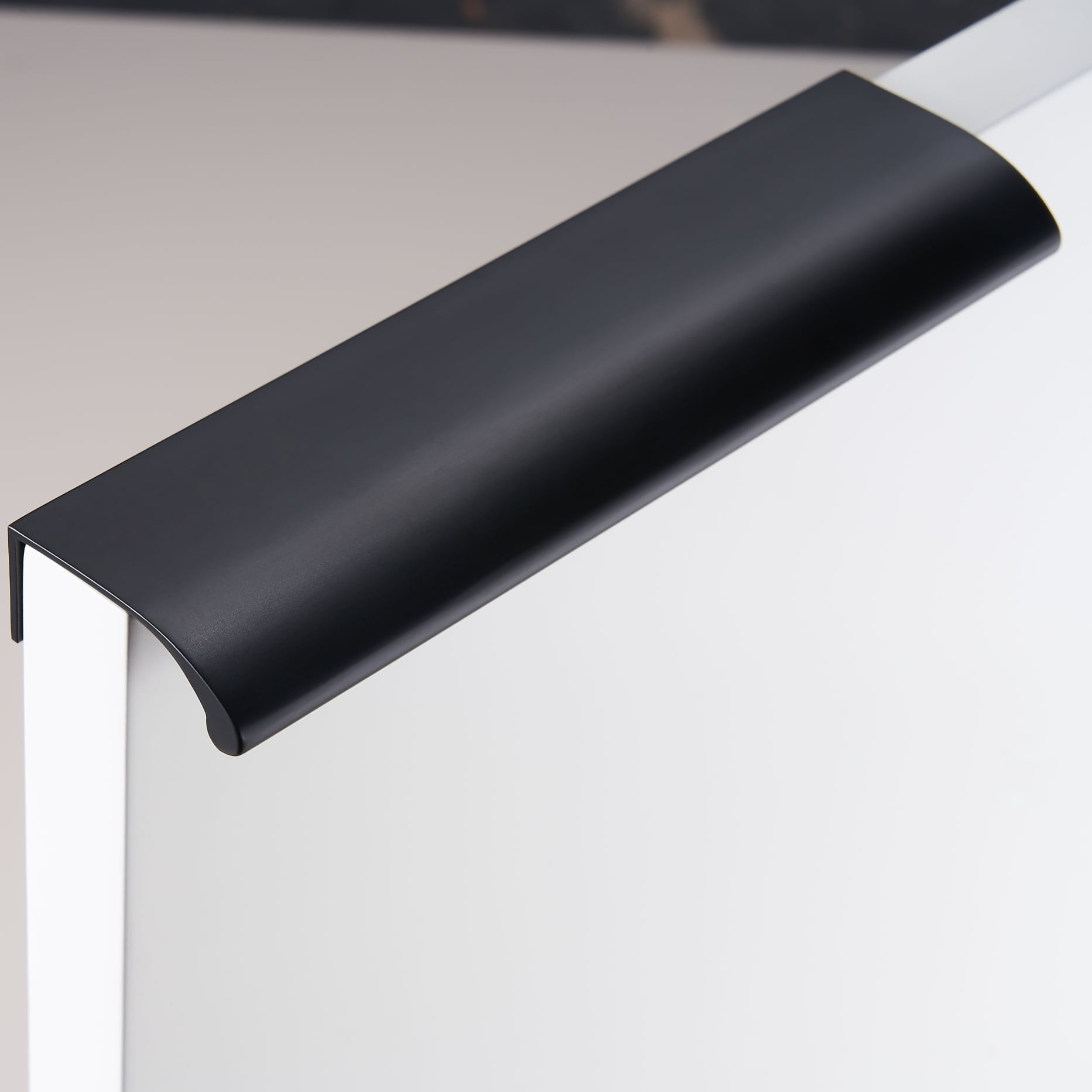 The ARC is an edge pull, sometimes called a lip pull, with a curved profile that your fingers hook under to open the drawer or door. It mounts flush to the surface with just the curved lip protruding, giving a very clean, low-profile look. It is a good alternative to a standard handle where minimal projection is preferred.
