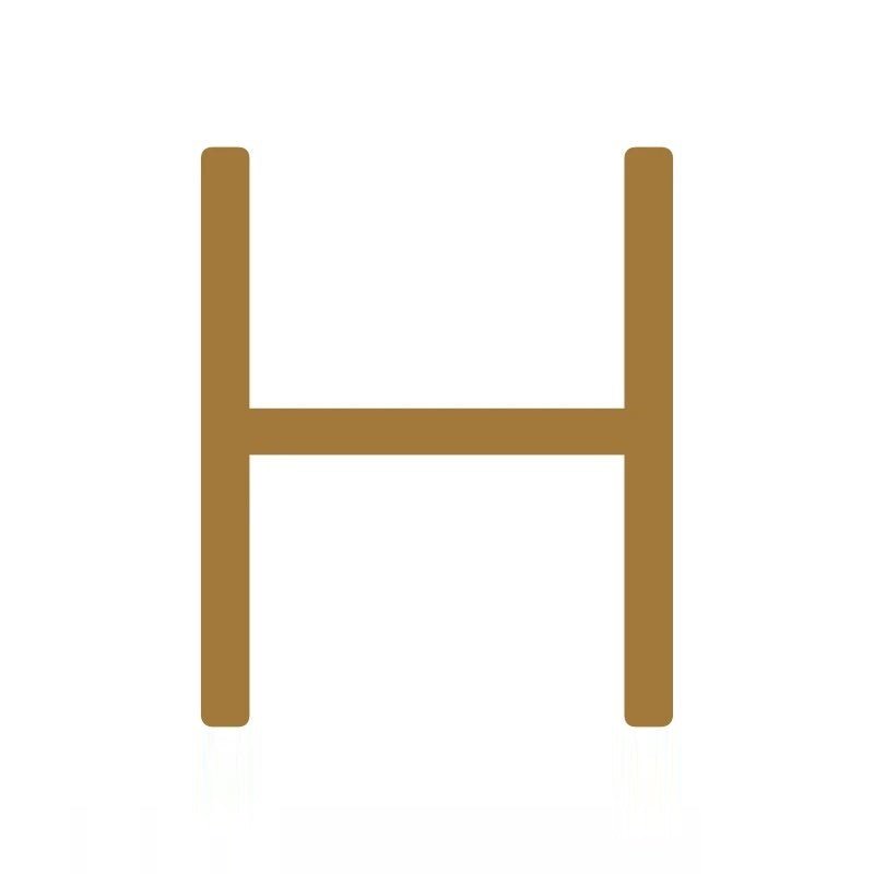 EZRA characters in hammered antique brass layer two textures: the dimpled, hand-hammered surface of the hammered range and the darker patina of the antique finish. The result is signage with real visual depth and a sense of age from day one.