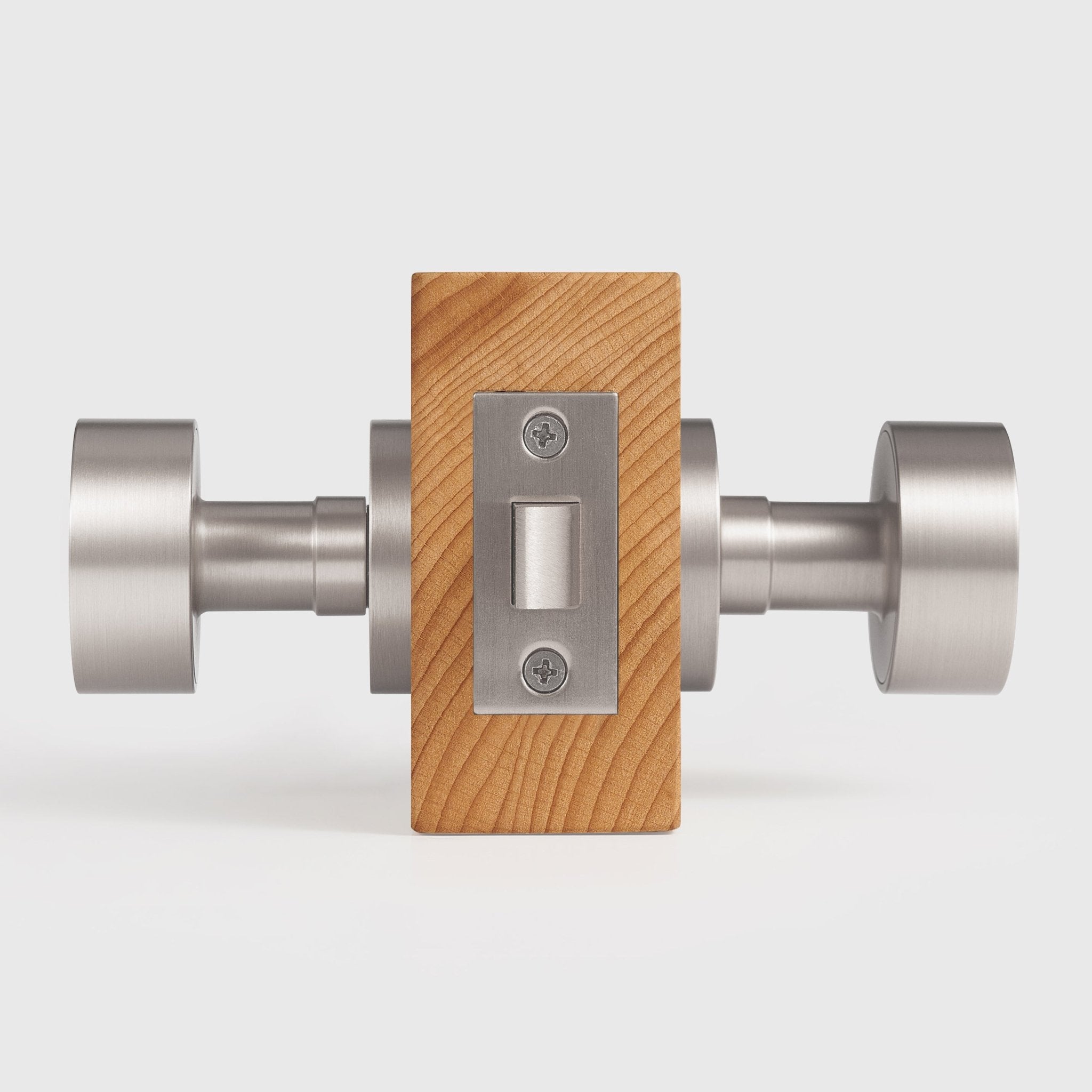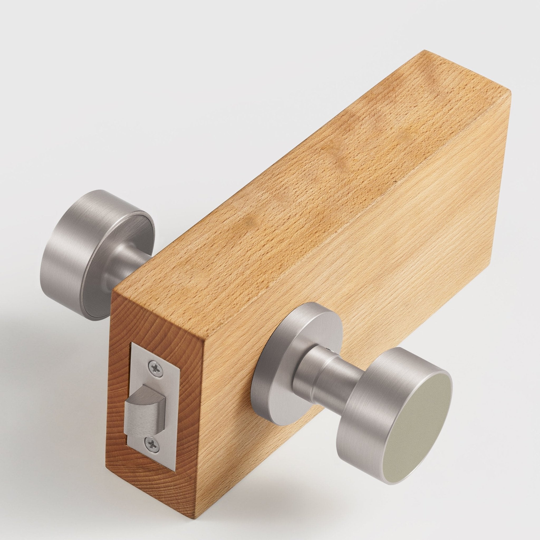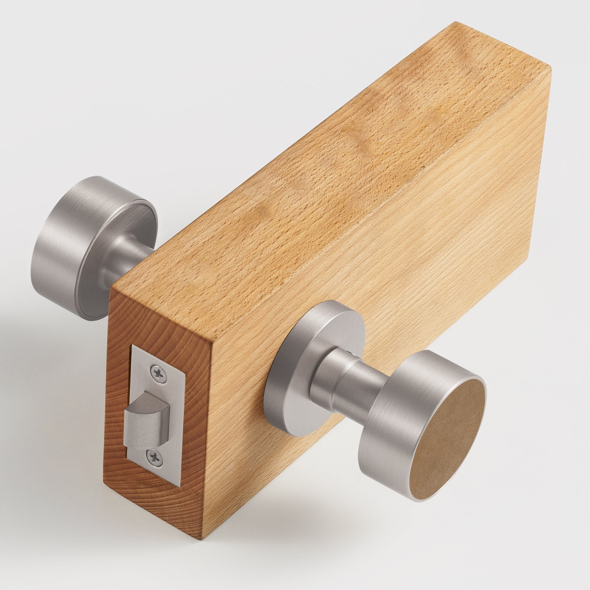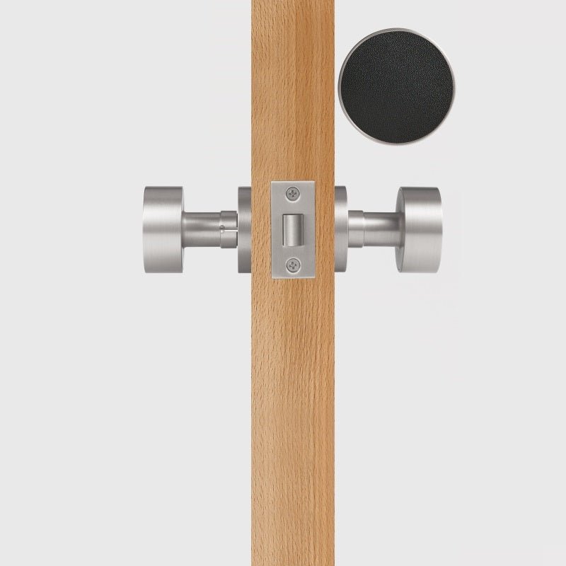 The FERN door knob in satin nickel pairs Italian leather with a cooler, silver-toned brass finish. The leather wraps the knob sphere while the satin… View product details
