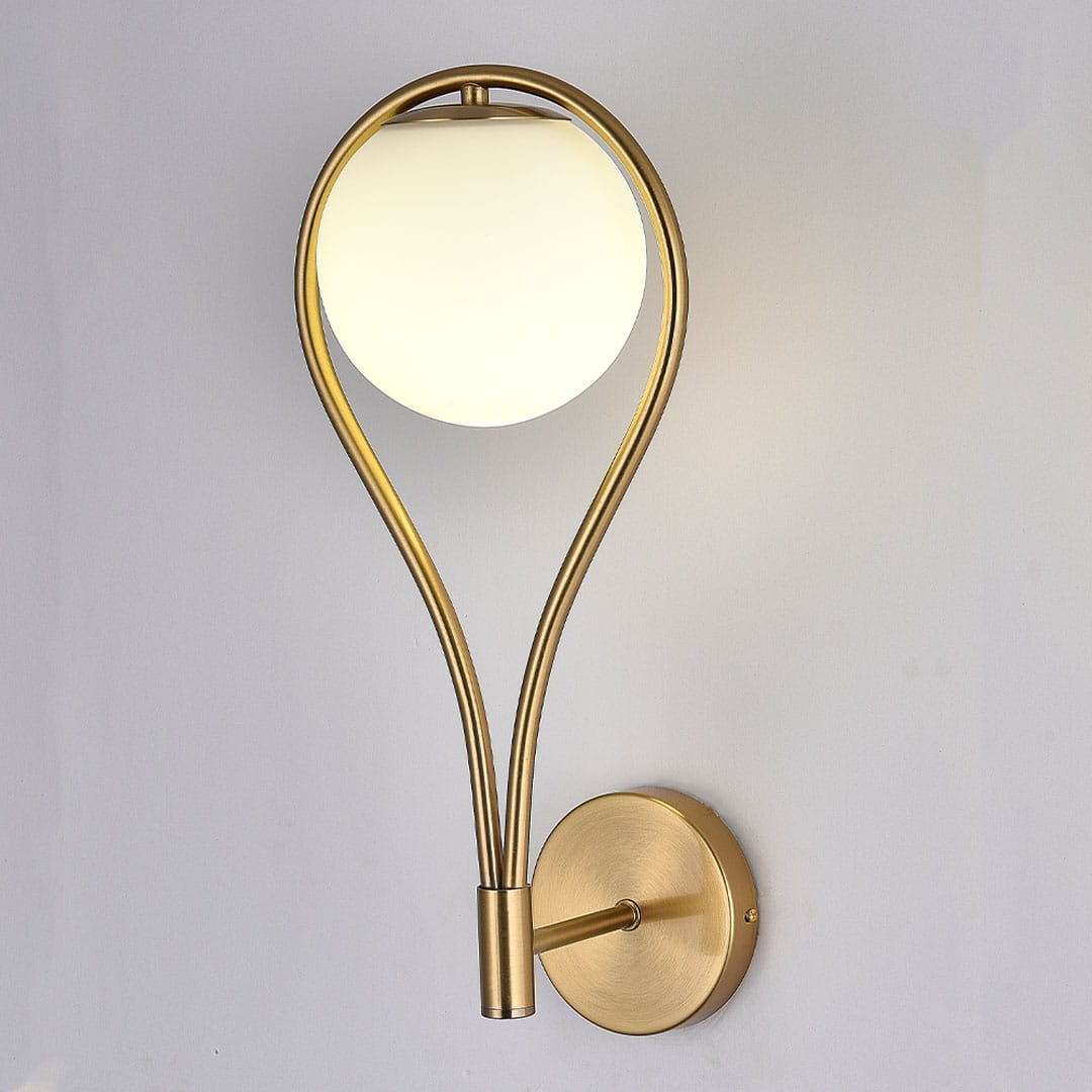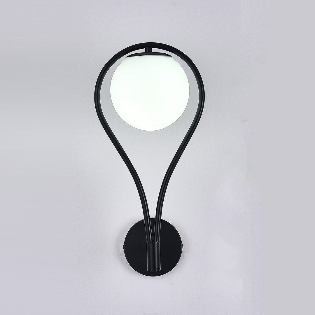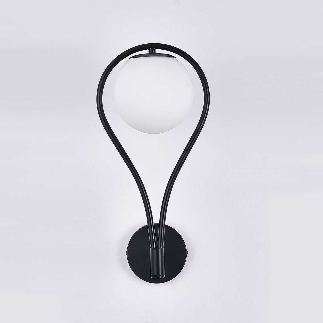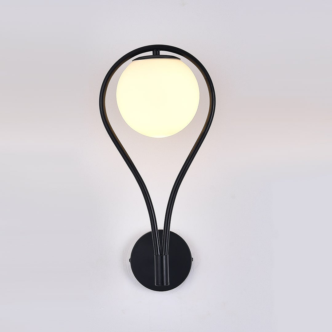 The FLEUREN Teardrop Wall Light frames the frosted glass globe inside a looped, teardrop-shaped arm. The metal curves down from the wall plate and wraps around the globe, creating a silhouette that adds visual interest without overwhelming a room.
