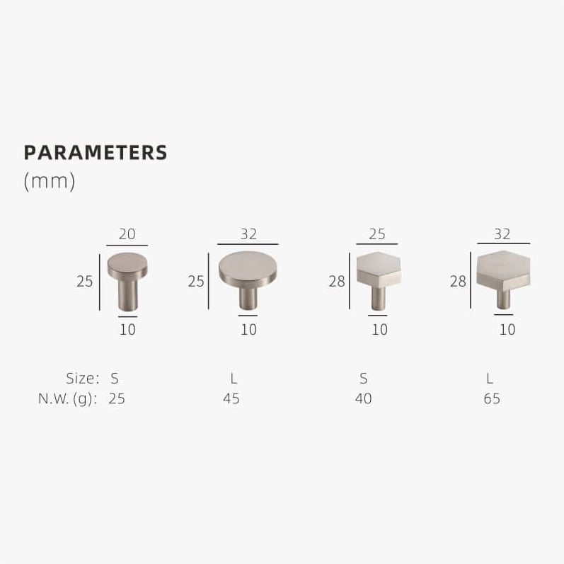 Both shapes are machined from solid brass with clean, precise edges. The satin nickel finish provides a cool, contemporary tone that pairs naturally with grey cabinetry, concrete surfaces, and stainless steel appliances. Satin brass offers warmth for spaces with timber, leather, or earthy colour palettes.