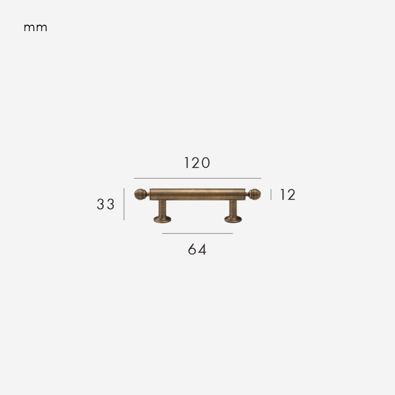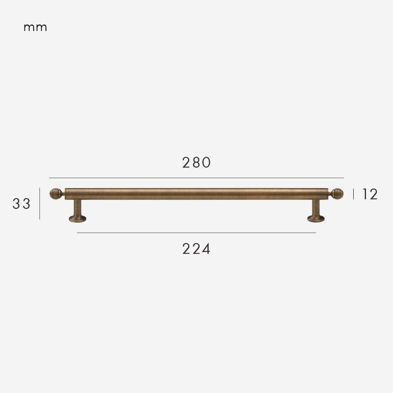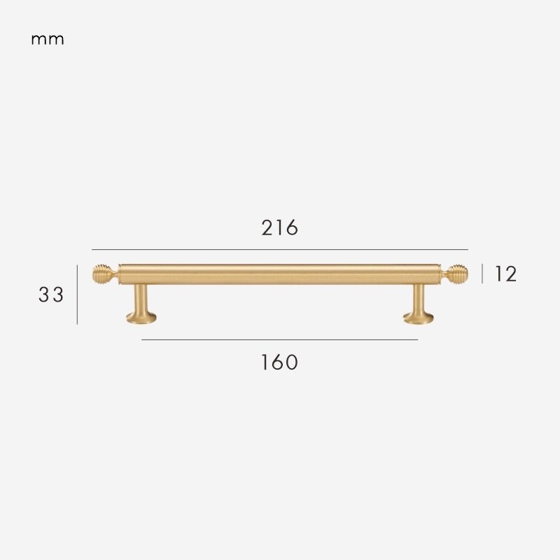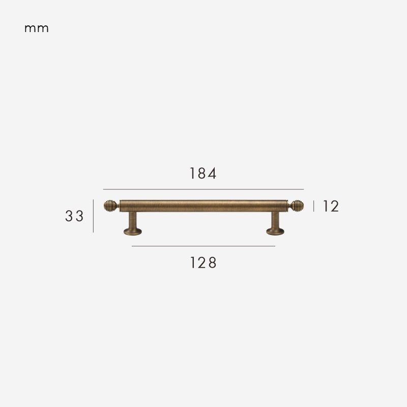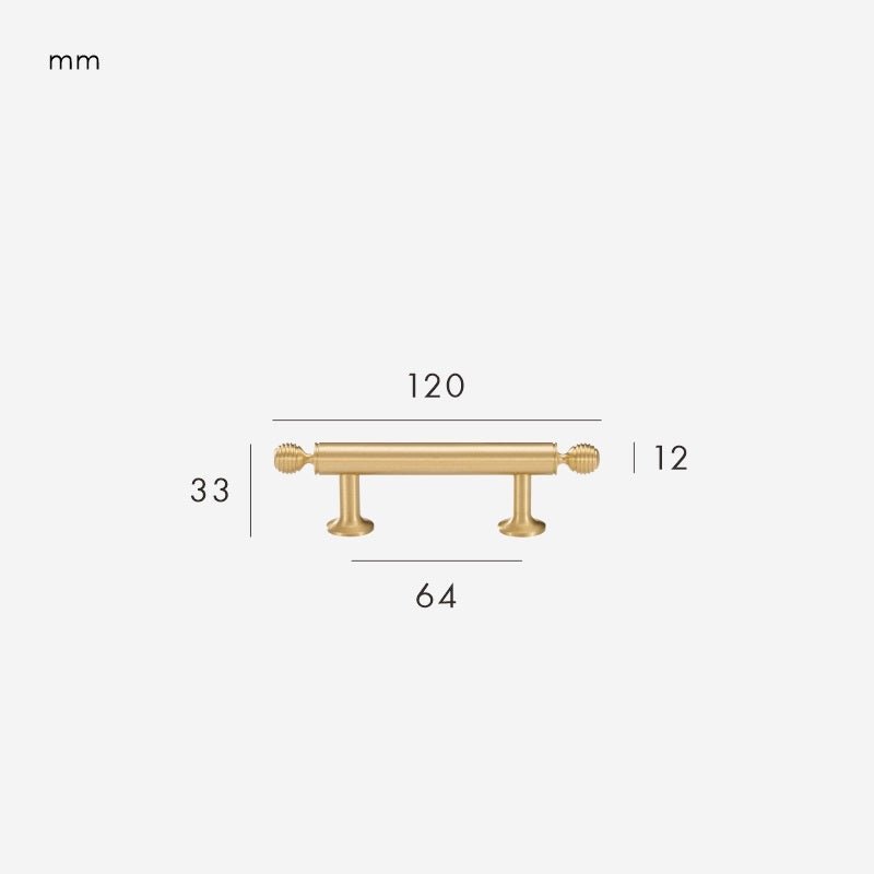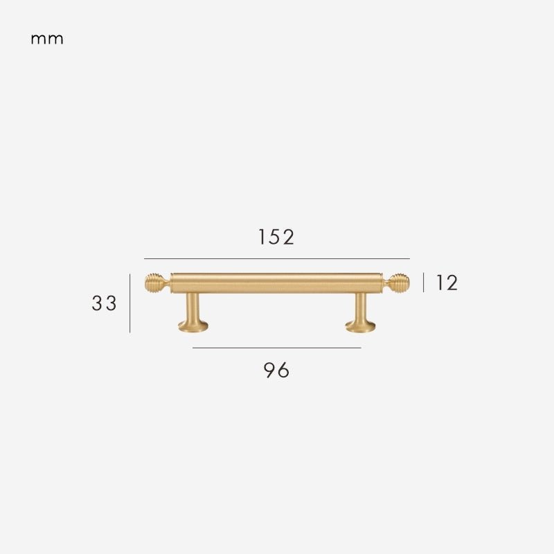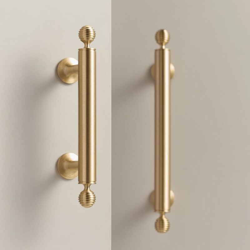 The GREPP Solid Brass Handle is one of our bestselling designs — a beautifully proportioned bar handle with decorative turned end posts that bring a touch of traditional craftsmanship to any cabinetry. The smooth cylindrical bar sits comfortably in the hand, while the rounded, lathe-turned detailing at each end adds subtle character without feeling ornate.