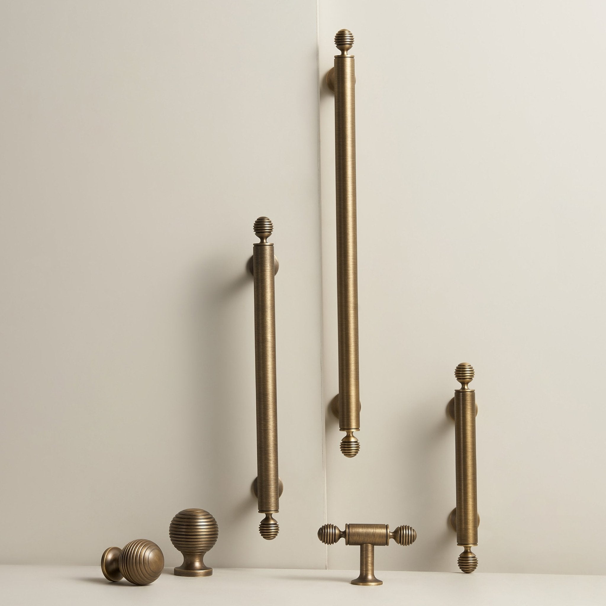 Made entirely from solid brass, each handle carries a satisfying weight and is built to withstand years of daily use. Choose from three warm finishes: Satin Brass, with its softly brushed golden tone; Unlacquered Brass, which develops a rich, living patina over time as the raw brass reacts naturally with its environment; and Antique Brass, offering a deep, aged warmth straight out of the box.