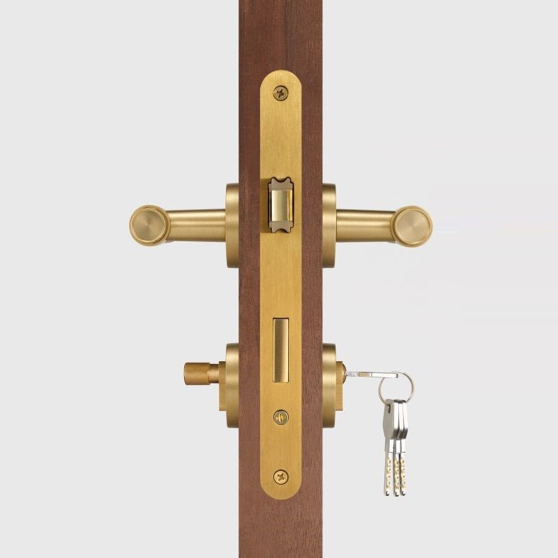 Solid brass. Available in multiple finishes. Compatible with UK/EU and North American door standards. Lock types include privacy, passage, entry key, entry thumbturn, and dummy. Sold as a pair. Fixings included.
