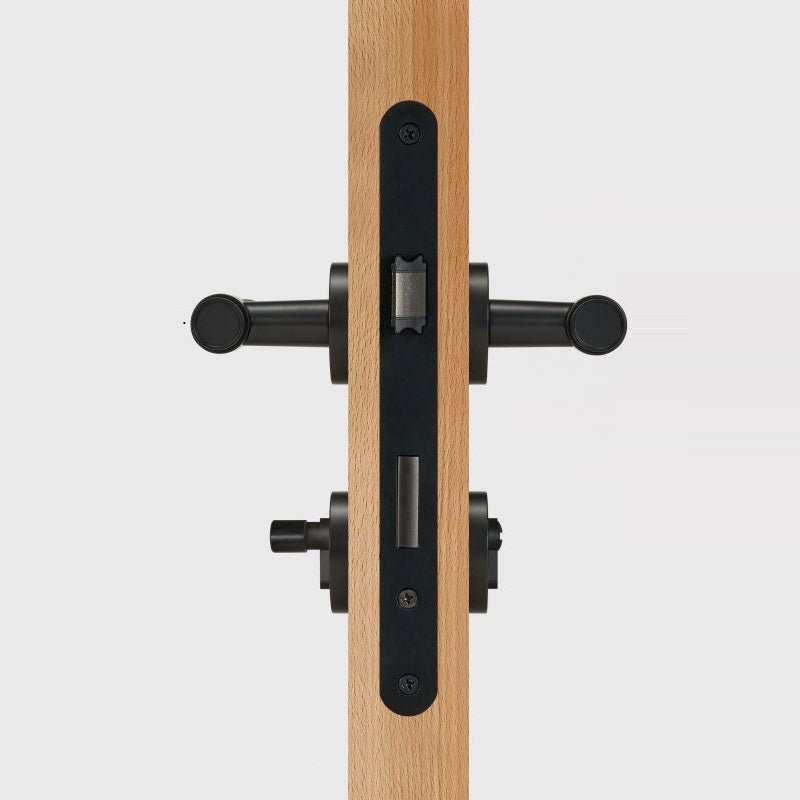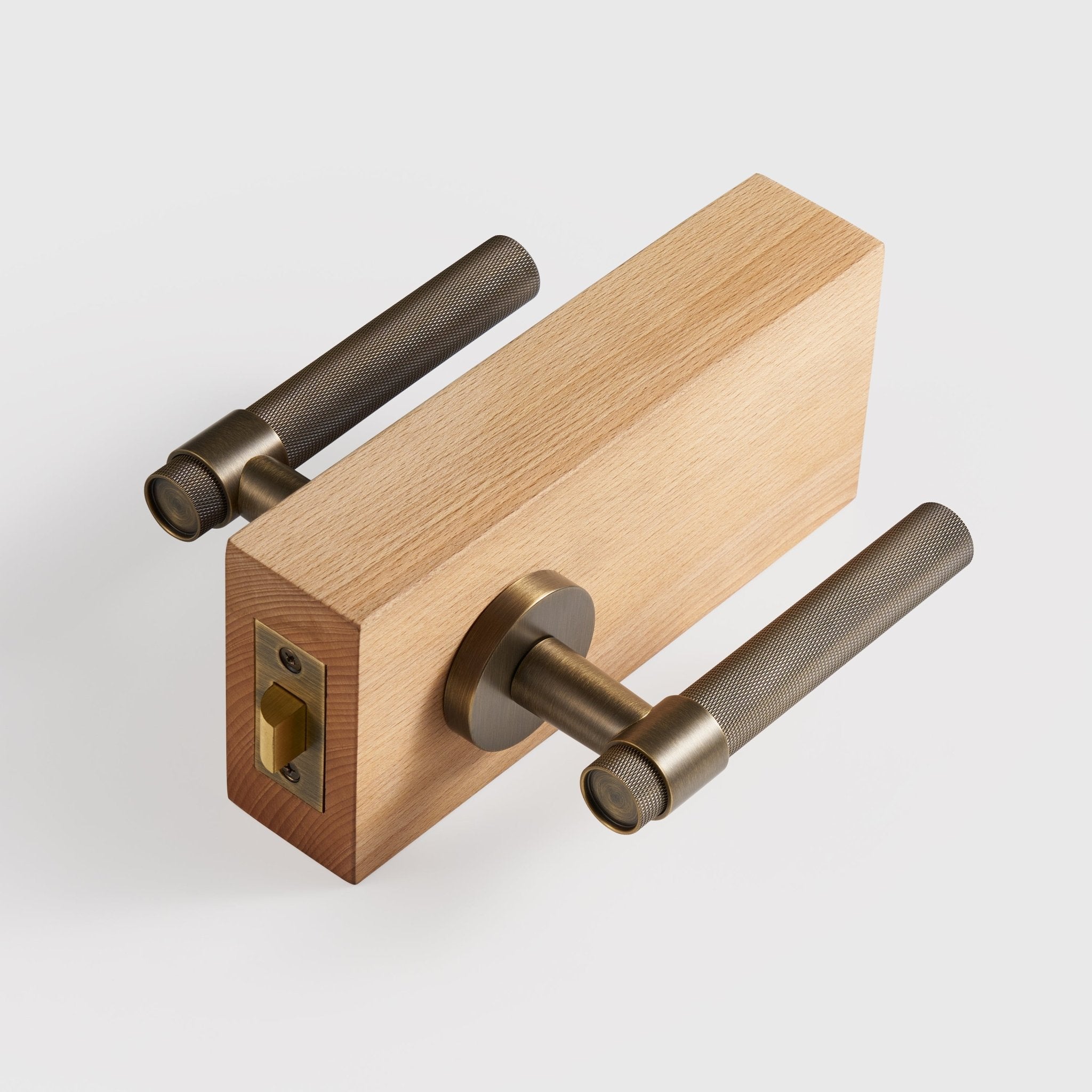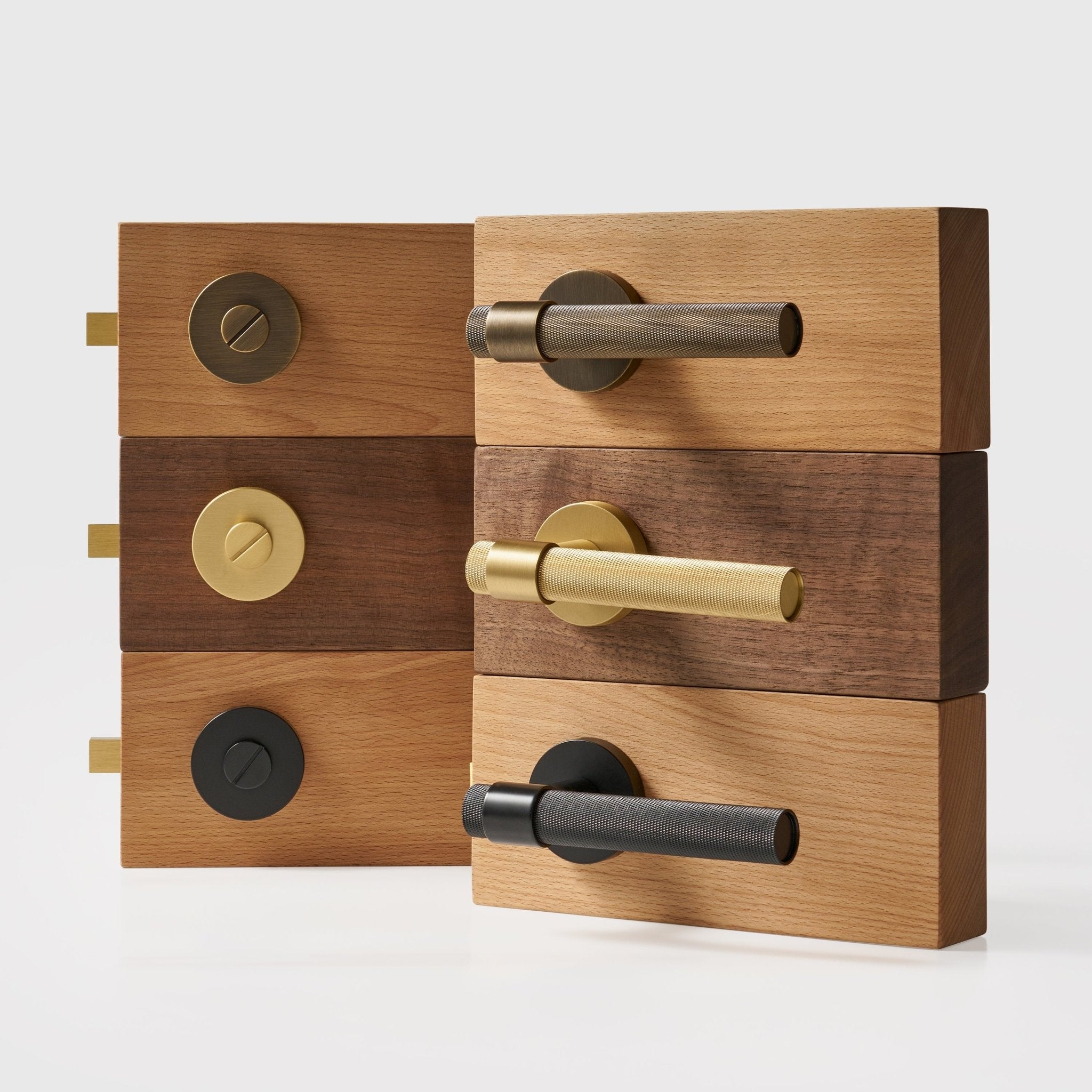 LITA lever handles pair a slim, diamond-knurled lever with a clean round rose plate. The knurled grip section gives tactile feedback when you operate the handle, while the smooth sections at either end provide visual contrast. A refined option for interior doors throughout the home.