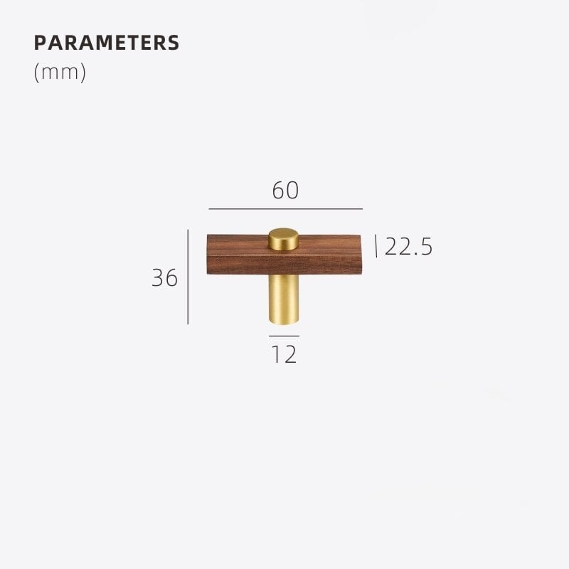 The NUX T-Bar combines a solid walnut grip with brass mounting stems. Wood and metal in one piece of hardware. The walnut provides warmth and organic texture. The brass provides structure and finish options.