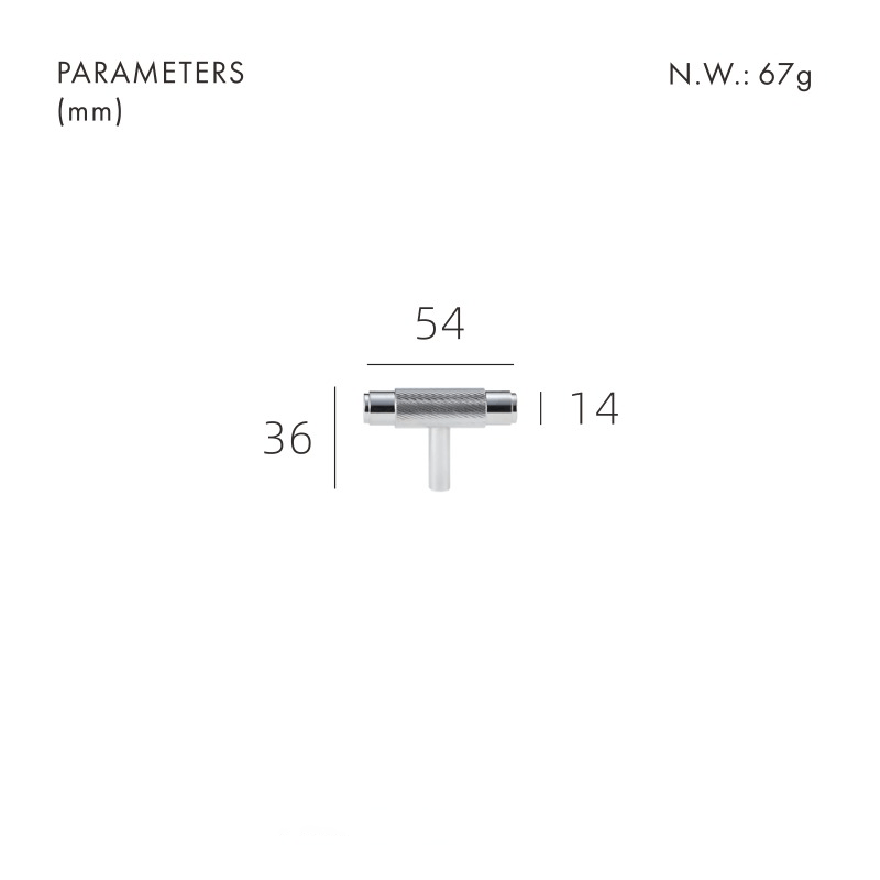 The SAINZ T-bar is a slim, cylindrical pull with diamond-knurled texture along its full length and softly rounded ends. The narrower diameter gives it a… View product details