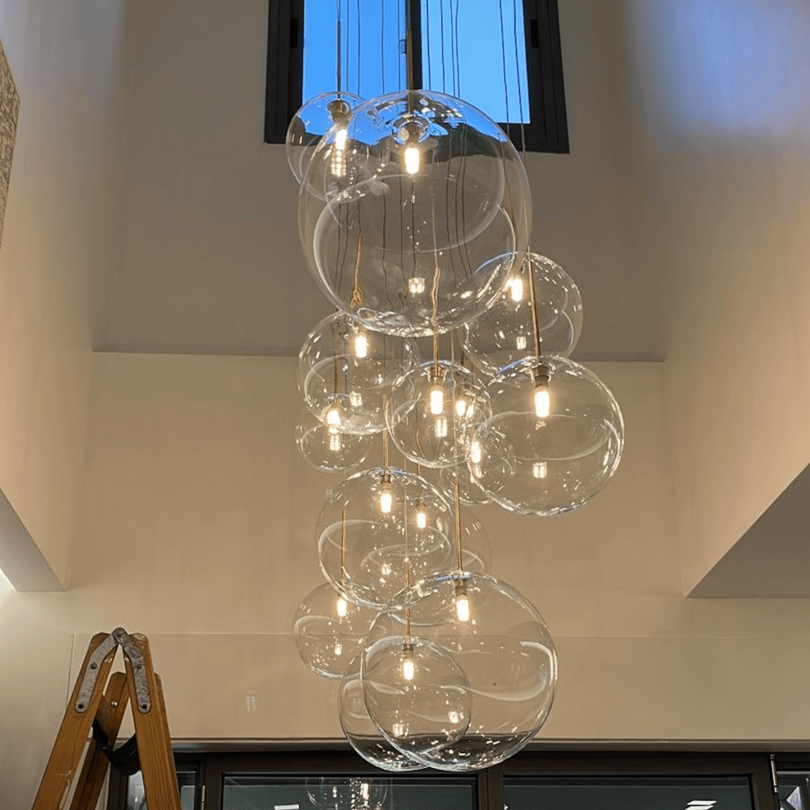 The cluster format works where a single pendant wouldn't fill the visual space. Above large dining tables, in stairwells, or as a feature in entrance halls, grouped globes create presence and depth that a solo pendant can't achieve.