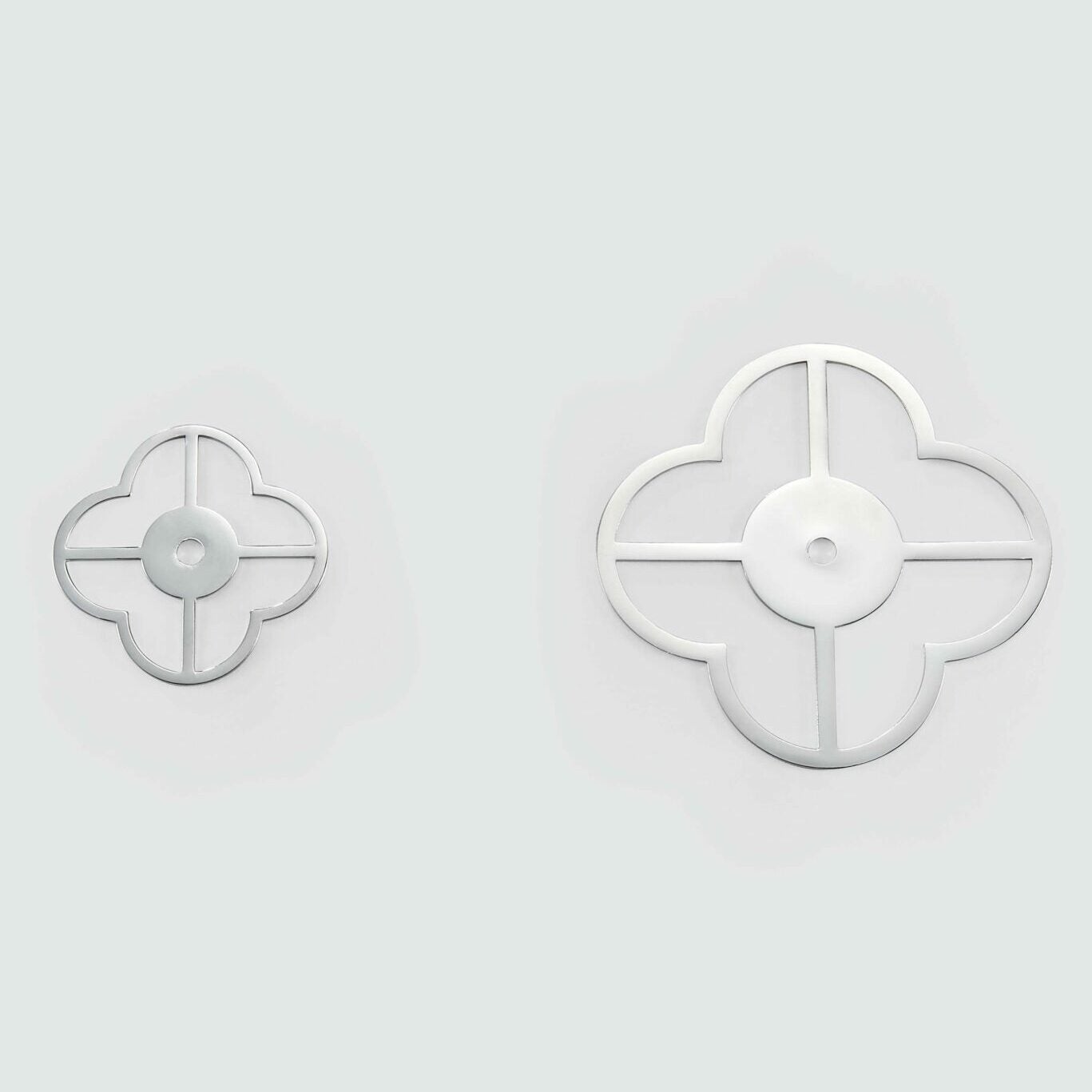 Designed to pair with TESTA shell and acrylic knobs, but works equally well behind plain brass knobs from other collections if you want to add character to existing hardware. Available as an open clover outline or a solid clover form.