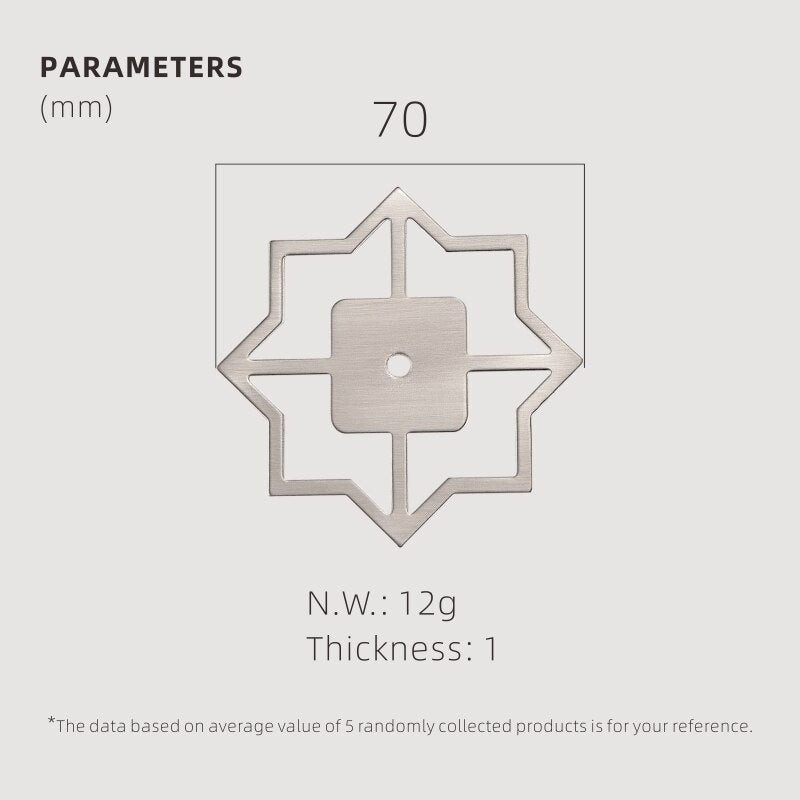 The TESTA star backplate places a six-pointed star outline behind your cabinet knobs, adding a geometric, almost Moorish decorative detail to drawers and doors. It is a simple addition that can completely change the character of a piece of furniture.