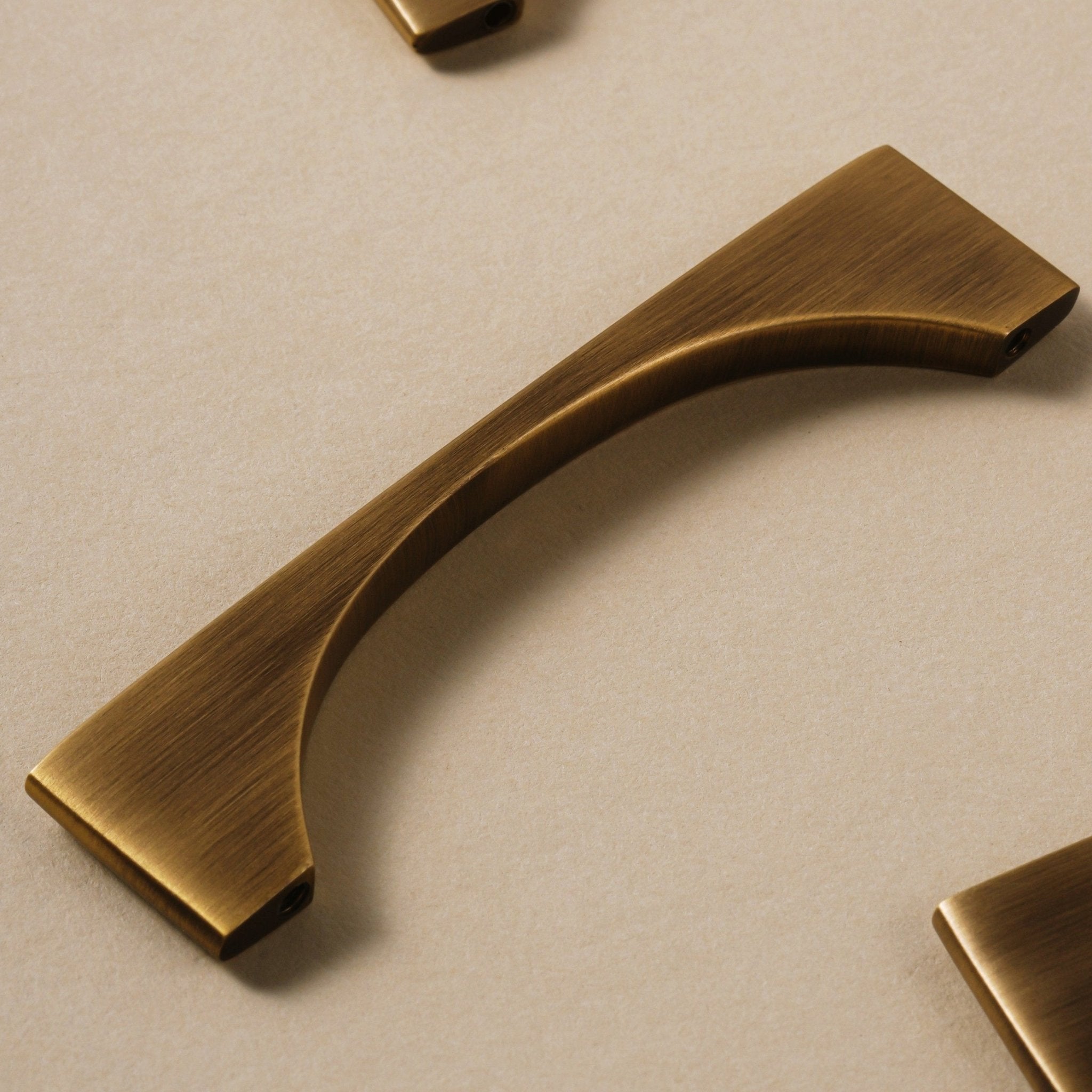 The sculptural shape casts interesting shadows across cabinet fronts, adding subtle movement to flat surfaces. Each piece is cast and finished in solid brass for the weight and quality that defines considered hardware. Multiple lengths suit different cabinet widths while maintaining the proportional integrity of the design.