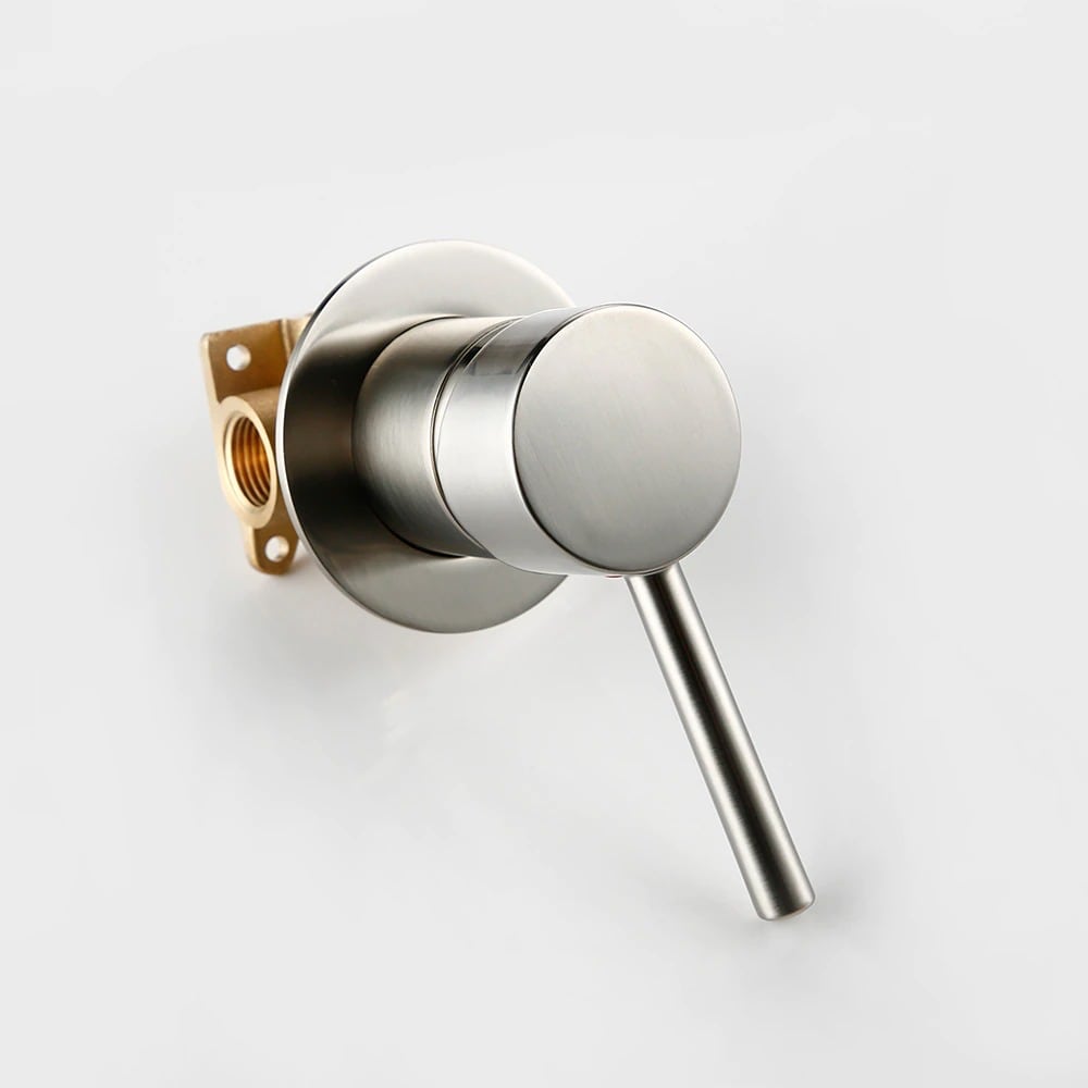 A concealed manual shower valve sits behind your wall, giving you a clean, uncluttered look in the shower enclosure. Only the trim plate shows. The solid brass valve handles water routing internally, with a simple manual operation.